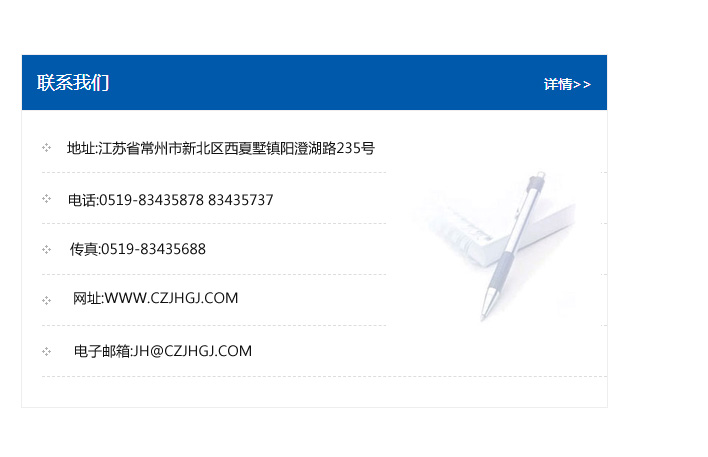 地址:常州市新北區友邦商務大廈1幢16、17層  電話:0519-85101652  傳真:0519-85112595  郵編:213022  網址:www_cz-jiayue_cn.bjhmwn.com  郵箱:xiajifengaa@163.com